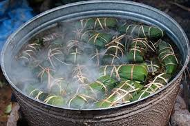 envolver los yoltamales y amárralos en piñas para cocinarlos en agua hirviendo.
